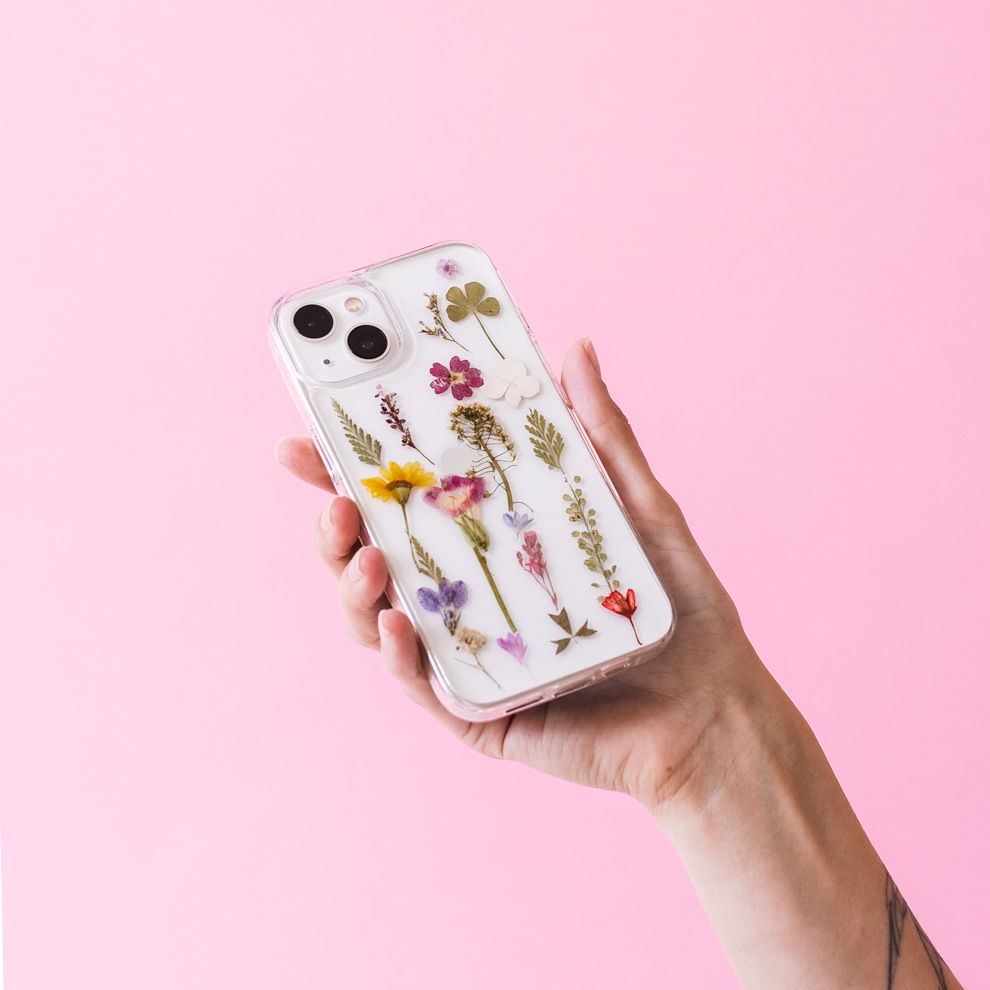 Onze Flora Dried Flower hoesjes zijn echt uniek en anders dan alle andere telefoonhoesjes. Elk hoesje bevat zorgvuldig geselecteerde, gedroogde bloemen die met de hand in het hoesje zijn gelegd. Dit maakt elk hoesje uniek en geeft je iPhone een prachtige, natuurlijke uitstraling.