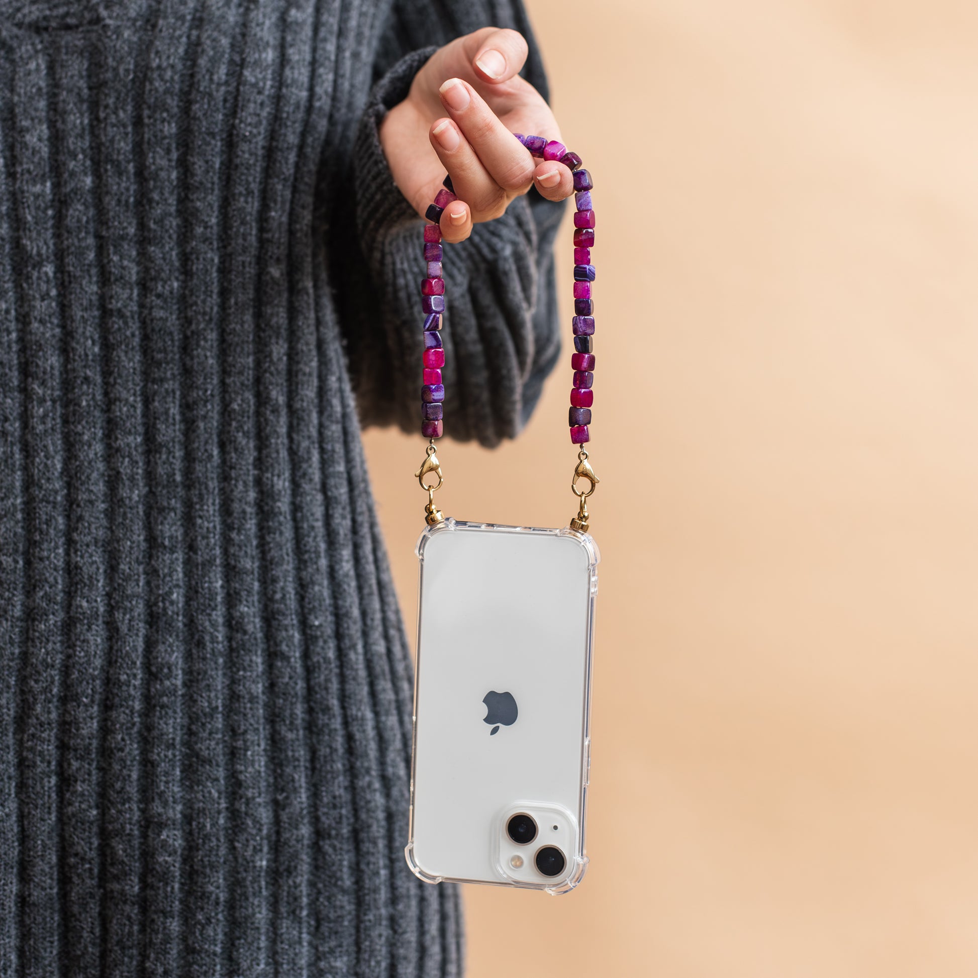 Stijlvolle telefoonhoesjes mét koord, ideaal wanneer je geen zakken hebt of je telefoon handsfree wilt dragen. Onze designs combineren mode en gemak: draag je telefoon als accessoire, wissel eenvoudig van koord en kies een stijl die bij jou past.